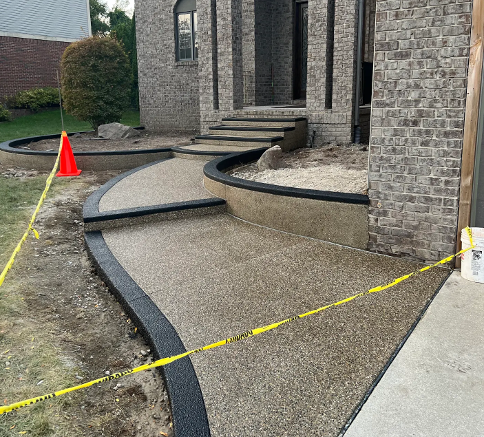 Say goodbye to cracked, stained, or uninspired driveways. We meticulously design and install each stamped concrete driveway to not only withstand heavy traffic and Michigan’s changing weather but also to significantly boost your home’s curb appeal. With a vast selection of patterns, textures, and custom color options, we create a truly unique driveway that reflects your personal style and leaves a lasting impression.